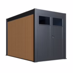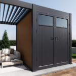 Deze schuur voor de Lamellendak Intro terrasoverkapping is de perfecte oplossing voor iedereen die op zoek is om extra opslagruimte toe te voegen aan zijn buitenruimte. Deze schuur sluit naadloos aan op onze Lamellendak Intro terrasoverkappingen met een diepte van 3 meter en is voorzien van een chique teakkleurige afwerking afwerking van composiet panelen in een teak kleur.