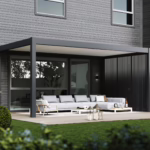- Aluminium profielen: De structuur van de overkapping is gemaakt van stevig, maar lichtgewicht aluminium met geïntegreerde regenwaterafvoer.