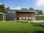 Deze overkapping met plat dak en schuur 7,3 x 3 meter in de kleur antraciet is dé perfecte oplossing voor wie op zoek is naar een moderne, strakke overkapping met extra opslagruimte. Dankzij de premium kwaliteit en ruim formaat is deze ook geschikt om te gebruiken als carport.