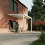 Deze ForaVida® terrasoverkapping met polycarbonaat dak in de kleur mat wit van 3,03 meter breed en 3,0 meter diep is uitgevoerd op 2 staanders. De staanders zijn standaard 2,7 meter lang.