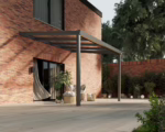 Deze ForaVida® terrasoverkapping met glas dak in de kleur antraciet van 4,03 meter breed en 3,0 meter diep is uitgevoerd op 2 staanders. De staanders zijn standaard 2,5 meter lang.