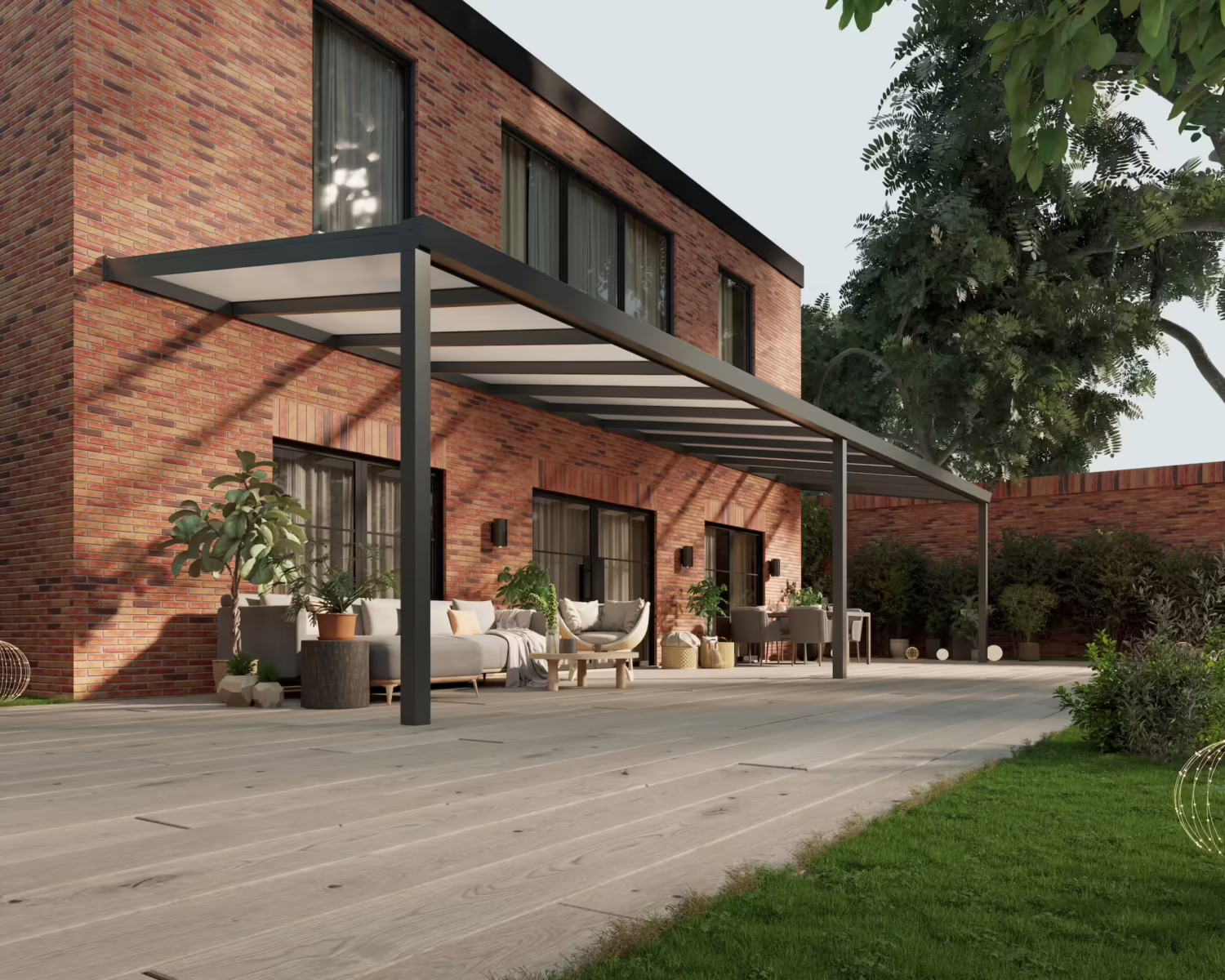 Onze terrasoverkapping is uniek met een dubbele XL goot en 6063-T6 aluminium. Door de dubbele goot is de overkapping extra sterk en is er geen kans op lekkage wanneer je een glazen schuifwand plaatst. Verder zijn onze zijliggers extra mooi afgewerkt en heb je keuze uit verschillende sierkappen. Zo is de overkapping compleet naar jouw wens afgewerkt. Uiteraard voldoet onze terrasoverkapping aan de hoogste kwaliteitseisen zoals het CE-keurmerk, Qualitcoat poedercoating en meer.