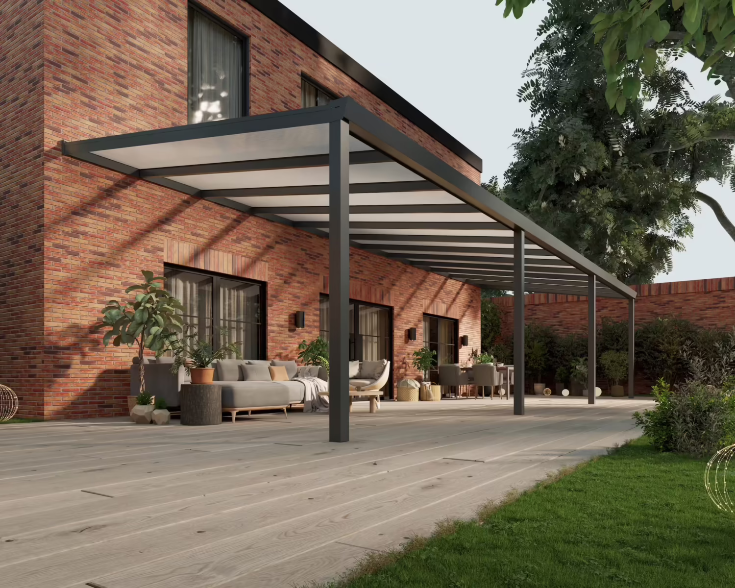 Onze terrasoverkapping is uniek met een dubbele XL goot en 6063-T6 aluminium. Door de dubbele goot is de overkapping extra sterk en is er geen kans op lekkage wanneer je een glazen schuifwand plaatst. Verder zijn onze zijliggers extra mooi afgewerkt en heb je keuze uit verschillende sierkappen. Zo is de overkapping compleet naar jouw wens afgewerkt. Uiteraard voldoet onze terrasoverkapping aan de hoogste kwaliteitseisen zoals het CE-keurmerk, Qualitcoat poedercoating en meer.