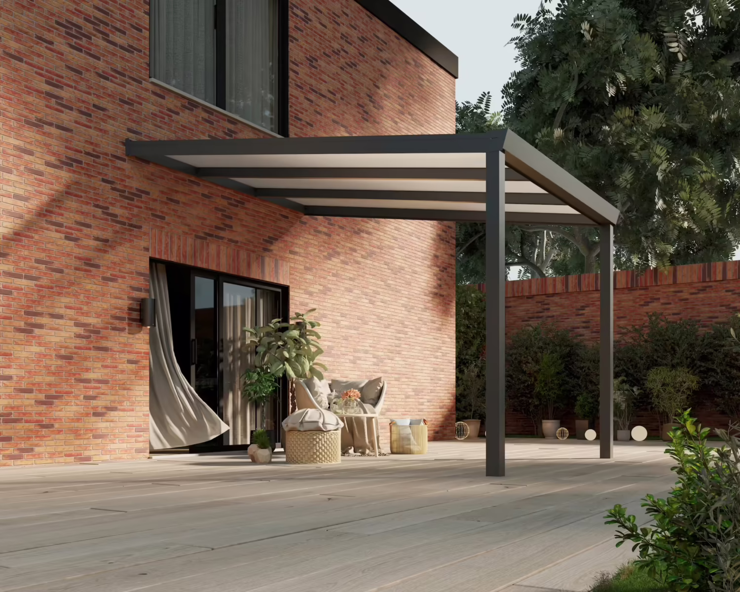 Door een slim ontworpen modulair systeem, is het mogelijk om de overkapping later nog uit te breiden tot bijvoorbeeld een luxe tuinkamer. Maak de zijkant (gedeeltelijk) dicht of plaatst glazen schuifwanden zodat je ook op de frissere dagen en avonden heerlijk van je tuin kunt genieten. En dat alles in stappen. Begin met een overkapping, en eindig met een volledige tuinkamer!