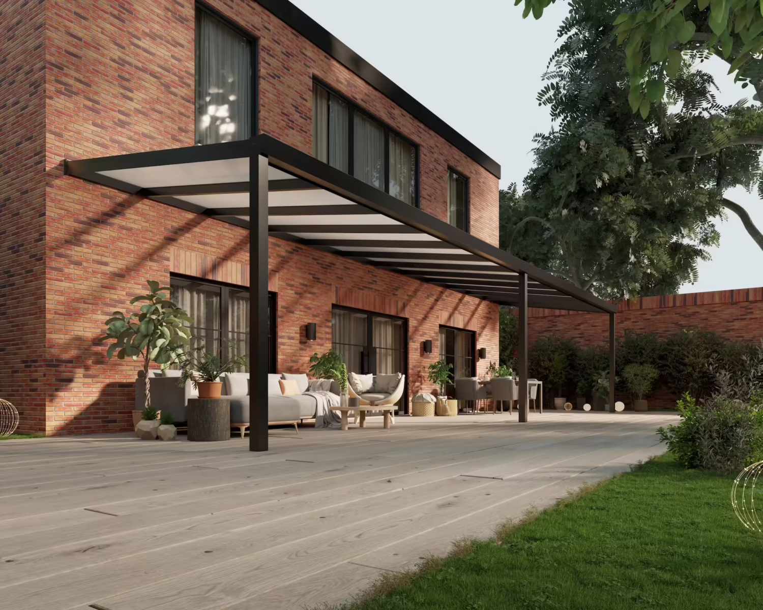 Onze terrasoverkapping is uniek met een dubbele XL goot en 6063-T6 aluminium. Door de dubbele goot is de overkapping extra sterk en is er geen kans op lekkage wanneer je een glazen schuifwand plaatst. Verder zijn onze zijliggers extra mooi afgewerkt en heb je keuze uit verschillende sierkappen. Zo is de overkapping compleet naar jouw wens afgewerkt. Uiteraard voldoet onze terrasoverkapping aan de hoogste kwaliteitseisen zoals het CE-keurmerk, Qualitcoat poedercoating en meer.