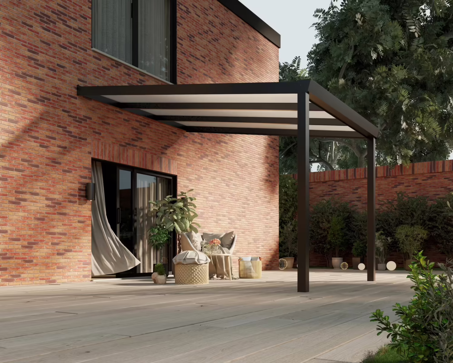 Onze terrasoverkapping is uniek met een dubbele XL goot en 6063-T6 aluminium. Door de dubbele goot is de overkapping extra sterk en is er geen kans op lekkage wanneer je een glazen schuifwand plaatst. Verder zijn onze zijliggers extra mooi afgewerkt en heb je keuze uit verschillende sierkappen. Zo is de overkapping compleet naar jouw wens afgewerkt. Uiteraard voldoet onze terrasoverkapping aan de hoogste kwaliteitseisen zoals het CE-keurmerk, Qualitcoat poedercoating en meer.