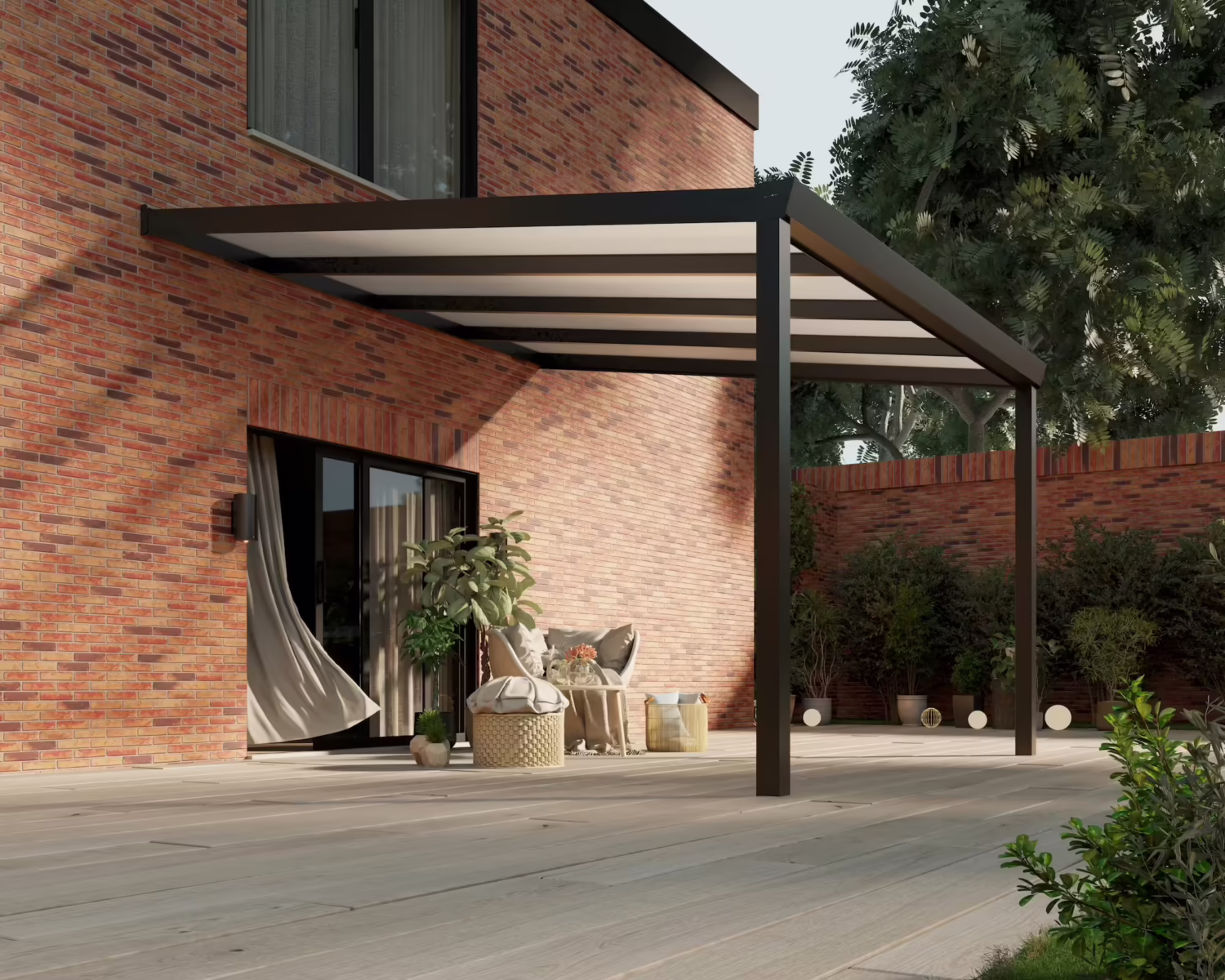Onze terrasoverkapping is uniek met een dubbele XL goot en 6063-T6 aluminium. Door de dubbele goot is de overkapping extra sterk en is er geen kans op lekkage wanneer je een glazen schuifwand plaatst. Verder zijn onze zijliggers extra mooi afgewerkt en heb je keuze uit verschillende sierkappen. Zo is de overkapping compleet naar jouw wens afgewerkt. Uiteraard voldoet onze terrasoverkapping aan de hoogste kwaliteitseisen zoals het CE-keurmerk, Qualitcoat poedercoating en meer.