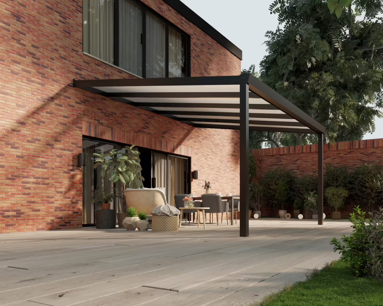 Door een slim ontworpen modulair systeem, is het mogelijk om de overkapping later nog uit te breiden tot bijvoorbeeld een luxe tuinkamer. Maak de zijkant (gedeeltelijk) dicht of plaatst glazen schuifwanden zodat je ook op de frissere dagen en avonden heerlijk van je tuin kunt genieten. En dat alles in stappen. Begin met een overkapping, en eindig met een volledige tuinkamer!