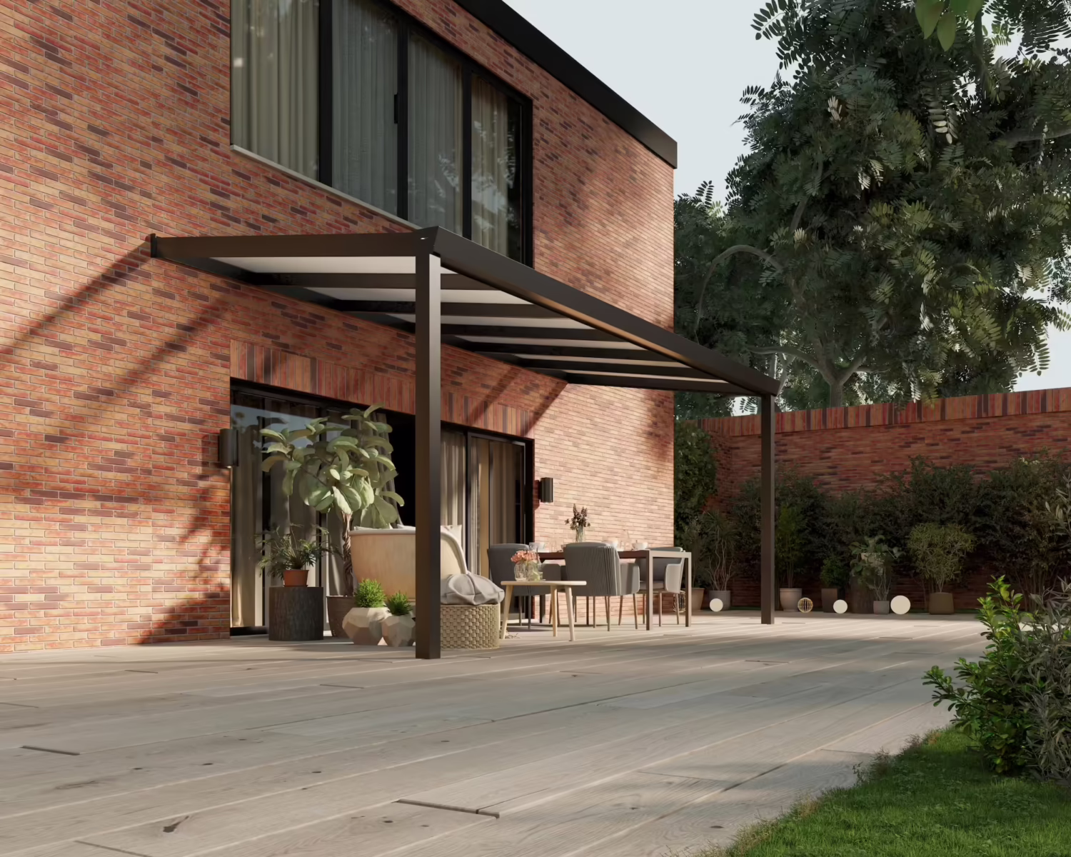 Onze terrasoverkapping is uniek met een dubbele XL goot en 6063-T6 aluminium. Door de dubbele goot is de overkapping extra sterk en is er geen kans op lekkage wanneer je een glazen schuifwand plaatst. Verder zijn onze zijliggers extra mooi afgewerkt en heb je keuze uit verschillende sierkappen. Zo is de overkapping compleet naar jouw wens afgewerkt. Uiteraard voldoet onze terrasoverkapping aan de hoogste kwaliteitseisen zoals het CE-keurmerk, Qualitcoat poedercoating en meer.