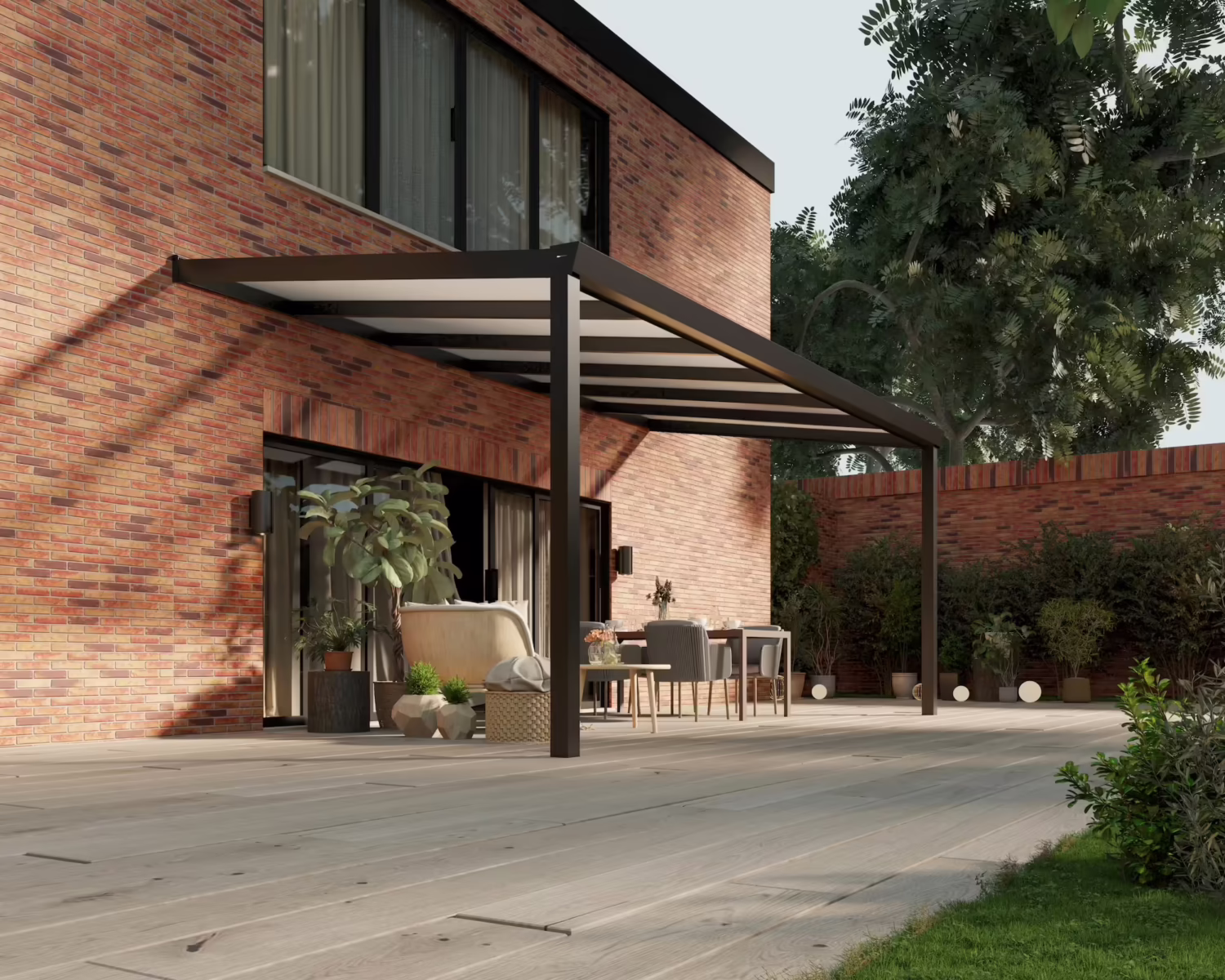 Door een slim ontworpen modulair systeem, is het mogelijk om de overkapping later nog uit te breiden tot bijvoorbeeld een luxe tuinkamer. Maak de zijkant (gedeeltelijk) dicht of plaatst glazen schuifwanden zodat je ook op de frissere dagen en avonden heerlijk van je tuin kunt genieten. En dat alles in stappen. Begin met een overkapping, en eindig met een volledige tuinkamer!