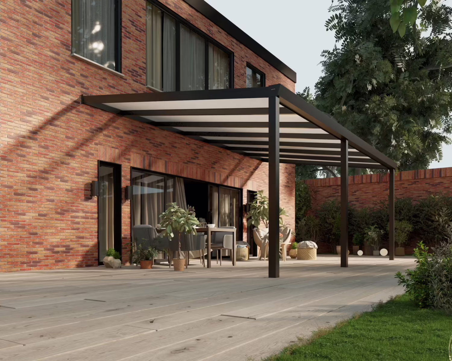 Onze terrasoverkapping is uniek met een dubbele XL goot en 6063-T6 aluminium. Door de dubbele goot is de overkapping extra sterk en is er geen kans op lekkage wanneer je een glazen schuifwand plaatst. Verder zijn onze zijliggers extra mooi afgewerkt en heb je keuze uit verschillende sierkappen. Zo is de overkapping compleet naar jouw wens afgewerkt. Uiteraard voldoet onze terrasoverkapping aan de hoogste kwaliteitseisen zoals het CE-keurmerk, Qualitcoat poedercoating en meer.